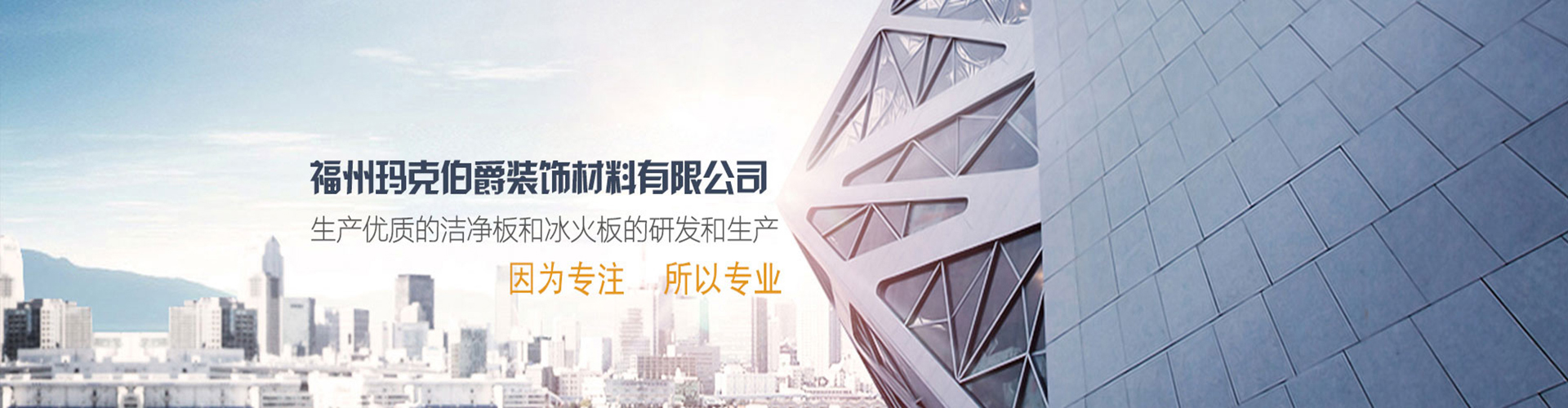 福州瑪克伯爵裝飾材料有限公司成立于2002年,是一家專業(yè)研發(fā)A級(jí)防火材料和生產(chǎn)內(nèi)外墻可替代裝飾材料的公司,主要價(jià)格生產(chǎn)各類工程裝飾用品:冰火板、醫(yī)用抗菌板、保溫一體板、隧道板等,產(chǎn)品具有防火防水、綠色環(huán)保、無毒、無煙無排放、抗菌、A級(jí)防火等多項(xiàng)技術(shù)優(yōu)勢。